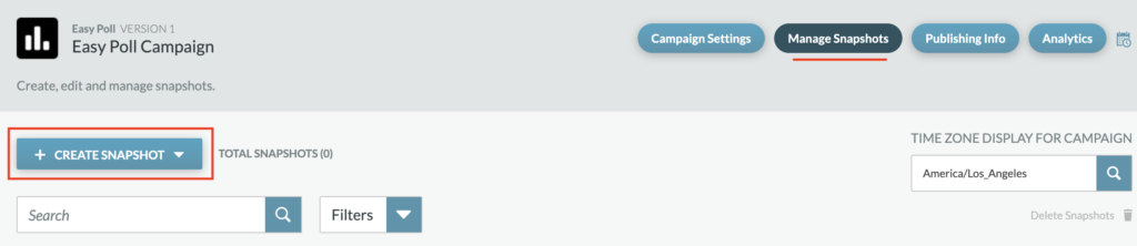 Once the Campaign Settings are configured, you can start creating snapshots by clicking on the “Manage Snapshots” button.