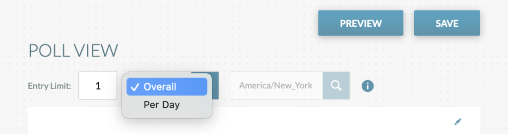 PREVIEW: Click to preview your poll at any time while customizing it. The preview will open in a new browser tab and you’ll see what the poll will look like in its LIVE state.