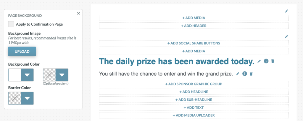 Add Media: An image or video can be added to the sweepstakes to increase engagement. Images should be at least 1024px wide.